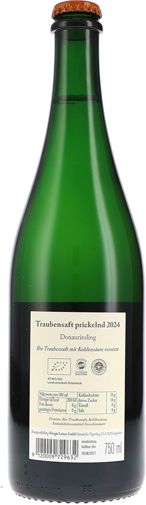 Der prickelnde Traubensaft von Loimer duftet nach gelben und süßen Früchten, Blüten und kandierten Frucht Zesten. Darüber hinaus zeigt er duftige Aromen von Blüten und Honig.
