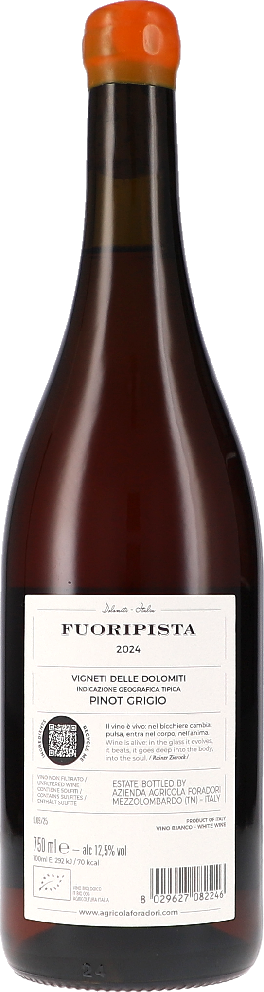 Der 2024er Fuoripista Pinot Grigio zeigt sich ausdrucksstark mit Hagebutte, Orange, vielen frischen, mediterranen Kräutern, Waldhimbeere und steinigen Noten. Die süße Frucht und Kompaktheit im perfekten Gleichklang. Eine Offenbarung von einem Wein, fernab von Allem was wir mit Pinot Grigio aus Italien verbinden.