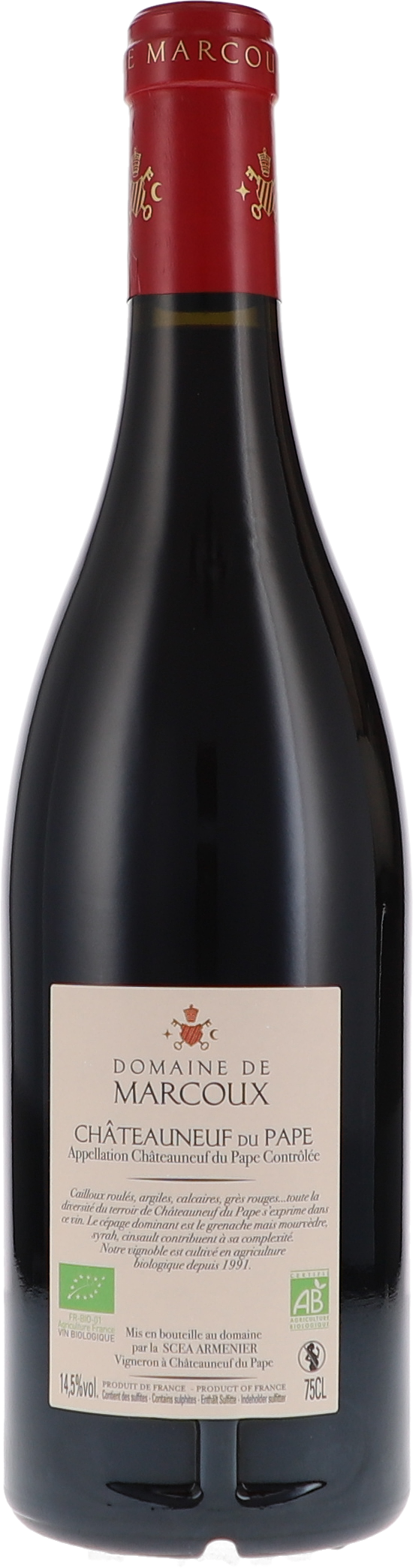 Die Weinberge der Domaine de Marcoux werden seit 1991 biologisch bewirtschaftet. Grenache Noir ist zwar mit 80% die vorherrschende Rebsorte, aber die Vielfalt der Böden sowie komplementäre Rebsorten sorgen für ein stimmiges und komplexes Ergebnis. Aus insgesamt 13 Parzellen und damit sehr variablen Bodentypen fließen neben Grenache auch 10% Mourvèdre, 7% Syrah und 3% Cinsault in diese Cuvée.