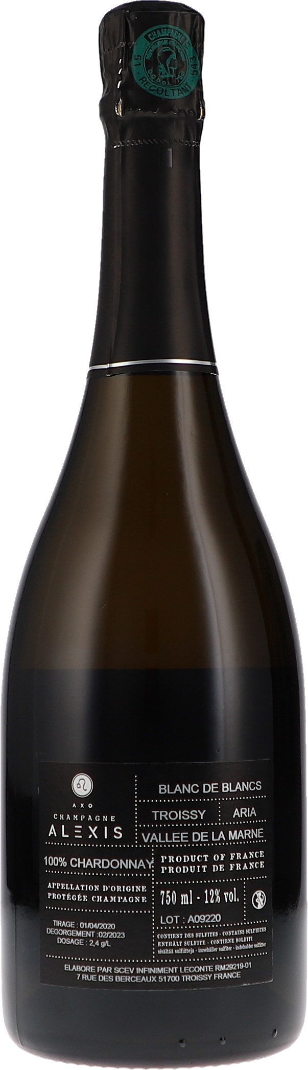 Champagne Alexis ist der Betrieb von Alexis Leconte, der hauptberuflich im Champagne-Gut seiner Eltern arbeitet. Seine eigene Unternehmung umfasst bisher kaum einen Hektar. Entsprechend rar sind die Champagner. Seine Lagen befinden sich in Troissy und Vandières im Vallée de la Marne, sowie in Aÿ im Grande Vallée. Er bewirtschaftet die teils sehr alten Meunier- und Pinot-Noir-Rebzeilen biologisch mit vielen biodynamischen Aspekten und richtet sich im Weinberg wie im Keller nach den Mondzyklen. Die Grundweine werden im wesentlich in 400er Tonneaux ausgebaut und in kleinen Teilen auch in Kelleramphoren. Die Gärung verläuft spontan. Auf eine malolaktische Gärung verzichtet er. Seine Champagner zeugen von einem Sinn für Tiefe, Komplexität, Balance und vor allem für Präzision und einem perfekten Säuredruck. Die Champagner, deren Frucht meist aus einem oder zwei Einzellagen stammen, sind vom ersten Moment an präsent.