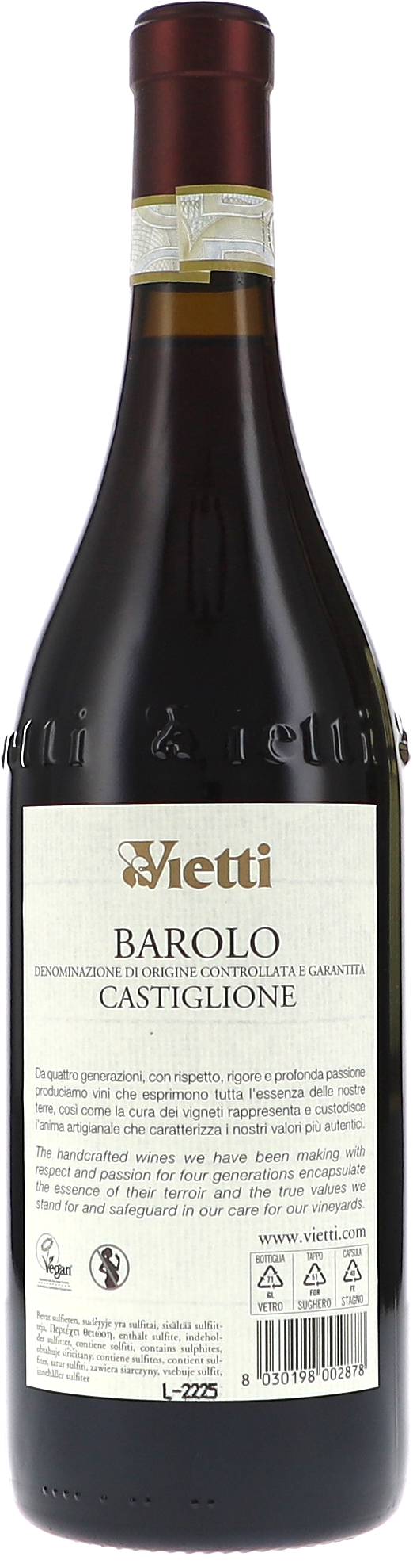 Der Barolo ‚Castiglione‘ ist Vietti‘s Interpretation eines klassischen Barolo. Die Trauben zur Erzeugung dieses Weines stammen aus einer Vielzahl von hervorragenden Barolo-Cru-Lagen, die sich in den verschiedenen Gemeinden des gesamten Barolo – Gebiets befinden. Kalkmergel-Böden, je nach Lage mit unterschiedlicher Zusammenstellung. Reberziehung am Drahtrahmen (Guyot) mit einer durchschnittlichen Pflanzdichte von ungefähr 4.500 Reben/Hektar. Durchschnittalter der Reben zwischen 10 und 45 Jahren.