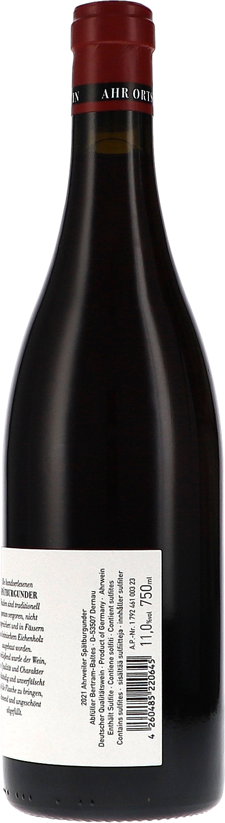 Ein echter Verführer ist dieser 2021er Ahrweiler Spätburgunder: Sauerkirschen, kleine helle Beeren, Waldhimbeeren und Holunder betören mit ihrer Frische. Dunkle und süße Blüten unterstreichen seinen überaus feinen Charakter zusätzlich, man möchte ihn direkt probieren.