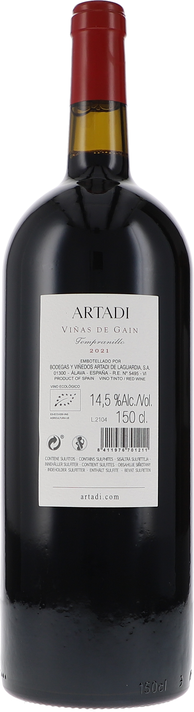 Das Weingut Artadi ist einer der wichtigsten Wegbereiter und Protagonisten des Wandels in Spanien von kellergeprägten zu terroirgeprägten Weinen. Der reinsortige Tempranillo „Viñas de Gain“ ist dabei ein Querschnitt durch die Terroirs der baskischen Rioja. Die Trauben stammen aus verschiedenen Weinbergen in den Gemeinden Laguardia und Elvillar. Einige Lagen liegen im wärmeren Ebrotal auf einer Höhe von 450 Metern, andere auf bis zu 700 Metern im kühleren Klima der Sierra Cantabria. Die Böden sind teils kalkhaltig, teils lehmig, teils steinig. Aus dieser Vielfalt an Terroirs entsteht ein komplexer und vielschichtiger Wein, der exemplarisch für die Alavesa steht. Der Wein ist außerdem biozertifiziert und reifte 12 Monate in Eichenfässern.