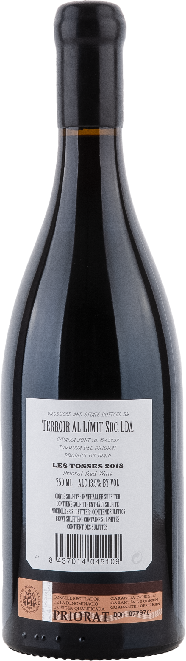 Les Tosses ist ebenso ein „Vi d´altura“ wie Les Manyes. Die Carignan-Stöcke steht auf 650 Höhenmetern. Der Untergrund ist der für das Priorat typische schwarze Schiefer – auch „licorella“ genannt. Der Ausbau erfolgt heute nur noch für 3 Monate in Stockinger-Fudern. Holz spielt also eine stark untergeordnete Rolle.