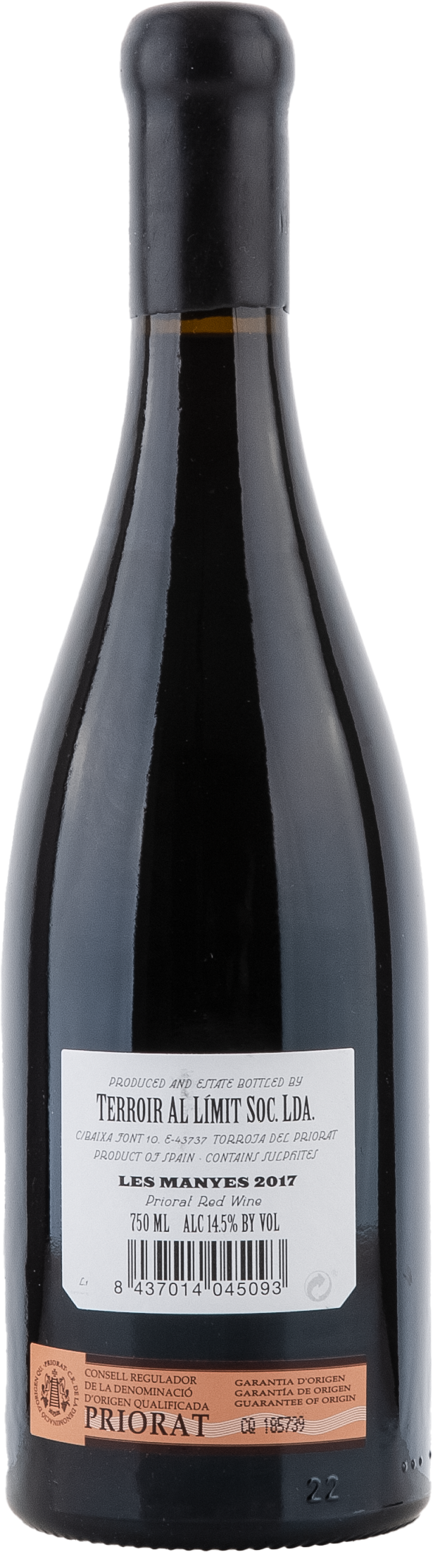 Auf dem Etikett steht über Les Manyes „Vi d´altura“. Das bedeutet aus dem katalanischen übersetzt. Wein aus der Höhe. Dieser reinsortige Grenache kommt aus einer 1,5ha großen Parzelle am dem nördlichen Ende des Priorat am Fuße des Montsant-Berges auf ca. 800 Höhenmetern. Dort stehen die 70,75--jährigen Reben auf einem Plateau aus Argile (Lehm & Ton) und wirken zunächst völlig unspektakulär. Um genau zu sein, ist es eine Mutation namens Garnacha Peluda, die einen leichten Flaum auf den Beeren aufweist. Seit dem Jahrgang 2016 ist Dominik Huber für den Les Manyes völlig weg gekommen vom Holz. Zu 100% wird dieser Wein im Zementtank ausgebaut. Er selbst sagt, dass dies der beste Wein ist, der von Terroir al Limit bis dato gemacht wurde.