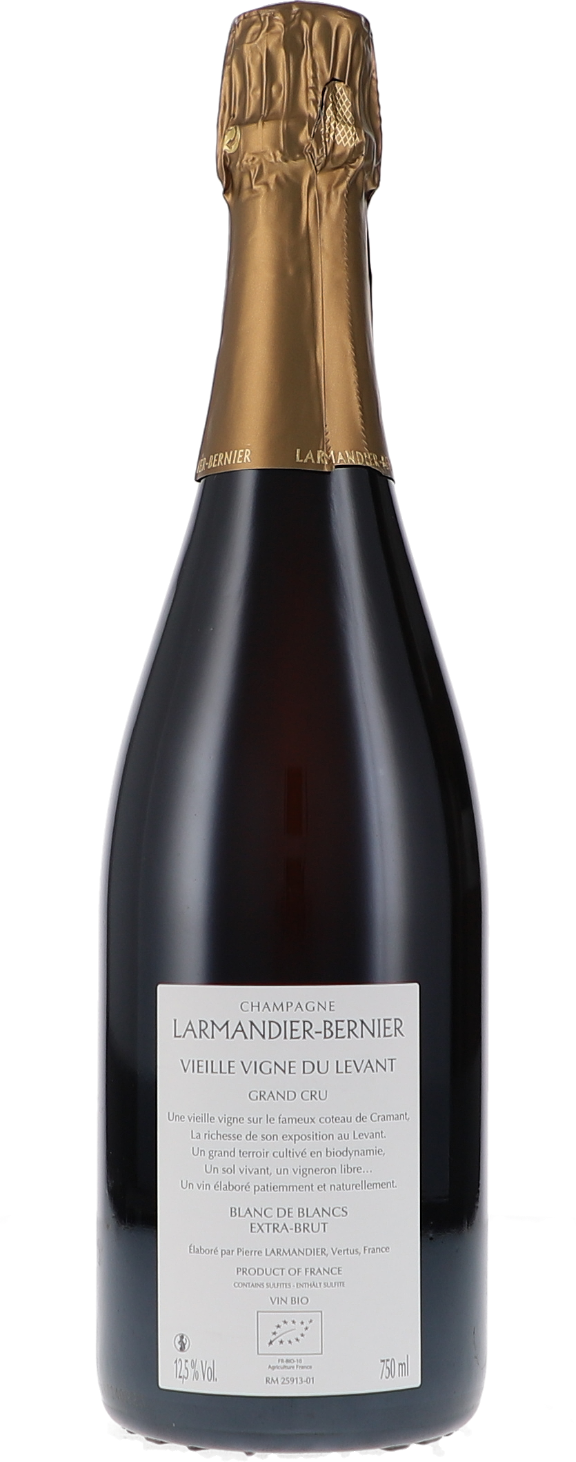 Als dieser Champagner 1988 erstmals veröffentlich wurde, hieß er Vieille Vigne de Cramant. Da die Larmandiers aber ständig Cramant erklären mussten, weil es als Crémant verstanden wurde, haben sie diesen Einzellagenwein irgendwann umbenannt, der Parzellenname dieser Cuvée lautet nämlich Bourron du Levant. Levant bedeutet Osten, und die Weinbergsparzelle profitiert von den ersten Sonnenstrahlen am Morgen. Die alten Rebstöcke sind zwischen 56 und mehr als 80 Jahren alt. Die Trauben werden sanft gepresst, der Saft wird leicht geklärt und kommt dann direkt ins Holz. Die alkoholische und die malolaktische Gärung beginnen spontan in Stockinger-Fässern und -Fudern. Die Weine reifen im ersten Jahr auf der Hefe, ohne dass sie gefiltert oder geschönt werden. Die Tirage findet im Juli statt. Es gibt keinen Verschnitt mit anderen Jahrgängen und mit anderen Terroirs. In den Flaschen reift der Champagner sieben oder acht Jahre sur lattes. Jede Flasche wird sechs Monate vor ihrer Freigabe von Hand degorgiert. Die Dosage liegt bei 2 Gramm.