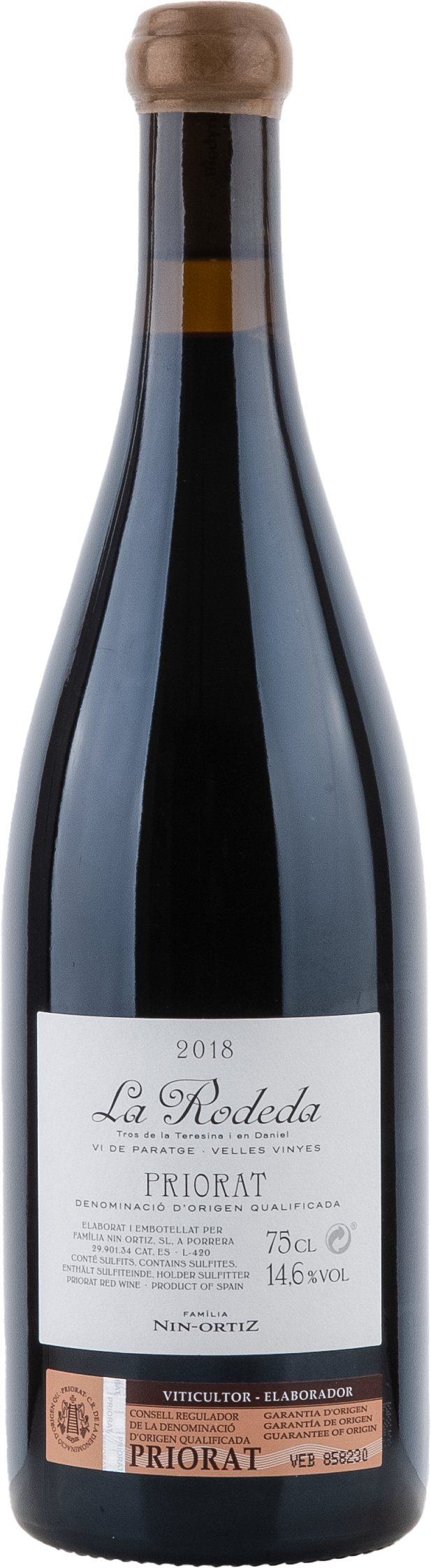 Dies ist der zweite Jahrgang eines Weines, der von einem gerade einmal 0,6 Hektar umfassenden Weinberg stammt, dessen Frucht bis zum Jahr 2016 noch im Mas d’en Caçador verarbeitet wurde. La Rodeda wird in den Appellationskarten als eigener Weinberg geführt, was Carles Ortiz und Ester Nin früher gar nicht bewusst war. Sie haben ihn immer zum Mas d’en Caçador hinzugerechnet. Das Besondere ist, dass dieser Weinberg fast zu 100 % mit ca. 80 Jahre alter Garnacha Peluda, auf Französisch Lladoner Pelut, bestockt ist, einer eigenen roten Grenache-Variante. Hinzu kommt, dass dieser Weinberg eine nördliche Ausrichtung hat und mit rund 650 Metern gleichzeitig zu den am höchsten gelegenen des gesamten Priorats gehört. Neben schwarzem Llicorella-Schiefer findet sich hier roter Quarzit. Die Trauben wurden als ganze vergoren und zu 100 % in neuen französischen Barriques ausgebaut. Mit exakt 13,87 % ist dies der Rotwein mit dem niedrigsten Alkohol im gesamten Sortiment. Gelesen wurden die Trauben am 13.09.2018. Die Trauben wurden nach dem Entrappen in offenen Gärbehältern mit Füßen gestampft und dann natürlich vergoren. Ausgebaut wurde der La Rodeda über 19 Monate hinweg in einem Fass, aus dem 310 Flaschen gefüllt wurden.
