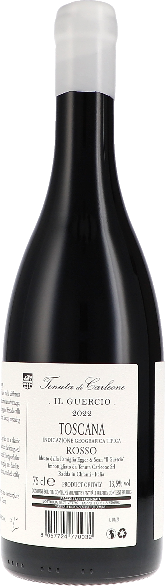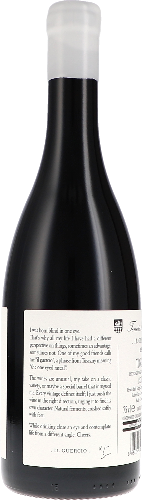 Il Guercio 2022 ist ein intensiver Wein. Er duftet ganz leicht rosiniert mit Noten von Feigen und reifen Kirschen, aber keineswegs eingekocht. Der Sangiovese wirkt neben der reifen Frucht eher duftig mit Noten von Garrigue, Veilchen und Rosenblättern, Schließlich gibt’s ein wenig Himbeere und würzigen Tabak.