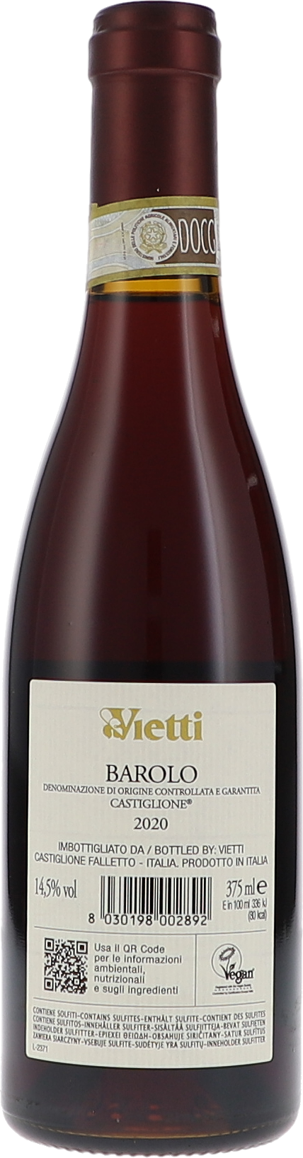 Der Barolo ‚Castiglione‘ ist Vietti‘s Interpretation eines klassischen Barolo. Die Trauben zur Erzeugung dieses Weines stammen aus einer Vielzahl von hervorragenden Barolo-Cru-Lagen, die sich in den verschiedenen Gemeinden des gesamten Barolo – Gebiets befinden. Geologie: Kalkmergel-Böden (je nach Lage mit unterschiedlicher Zusammenstellung). Reberziehung am Drahtrahmen (Guyot) mit einer durchschnittlichen Pflanzdichte von ungefähr 4.500 Reben/Hektar; Durchschnittalter der Reben zwischen 10 und 45 Jahren.