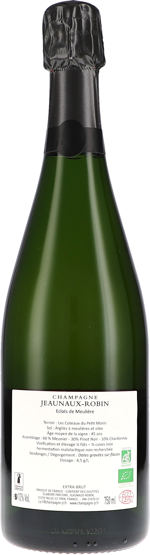 Cyril Jeaunaux betreibt in der dritten Genera- tion Weinbau und hat 2015 auf biodynamische Bewirtschaftung umgestellt. Ganz im Süden der Côte des Blancs, am Flüsschen Petit Morin, liegt das Örtchen Tallus Les Prix. Hier ist die Champagne wirklich noch länd- lich. Nichts deutet auf Luxus und Jet Set hin. Durch kühle Luft aus den umliegenden Hügeln sind die Weinberge im Tal Spätfrost gefährdet. Dagegen ist der Pinot Meunier am besten gewappnet, der hier dominiert. Ein kleiner Teil der Trauben kommt von der Côte des Bar, wo Cyril noch einen Hektar Weinberge bewirtschaftet. Die Weine werden in gebrauchten Barrique ausgebaut. Der biologi- sche Säureabbau wird wenn möglich vermie- den. Hier entstehen ganz individuelle und ehrliche Champagner, die animierende Säure, Mineralität und Trinkfluss vereinen.