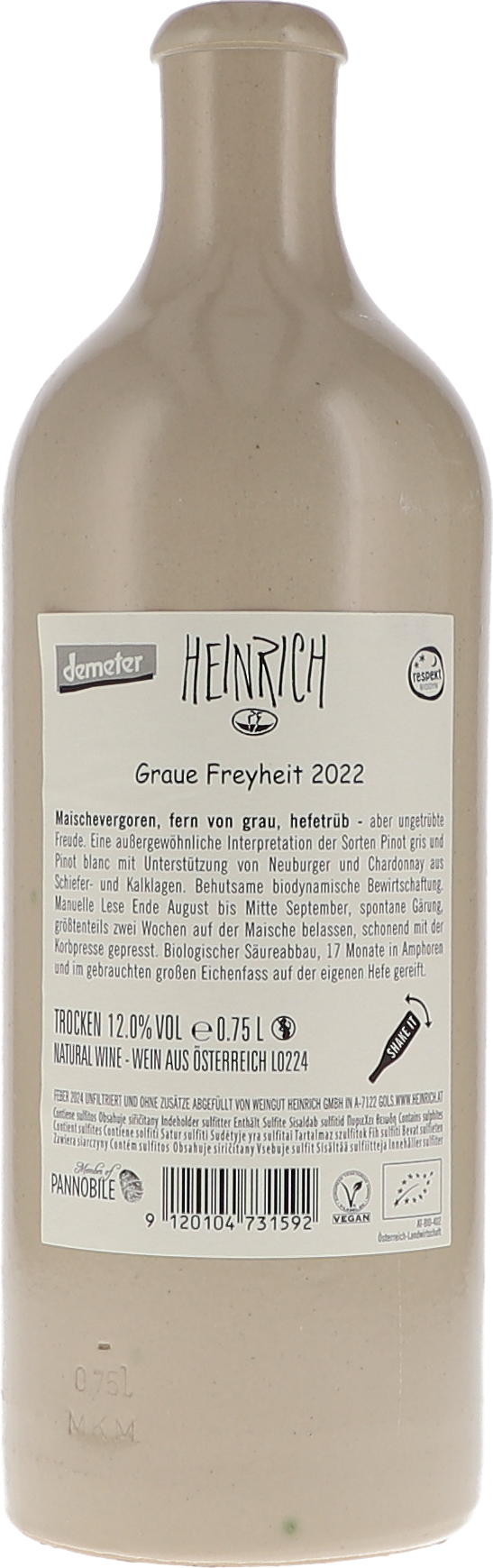 Was Gernot und Heike in den letzten Jahren aufgebaut haben, ist mehr als bemerkenswert! Er startete mit einen ha eigenem Weinberg und bewirtschaftet heute über 100 ha rund um Gols und am Leithaberg. Alle Weinberge werden biodynamisch bewirtschaftet. Gernot hat schon vor Jahren das Potential der Golser Lagen mit dem legendären Salzberg, aber auch mit dem Pannobile schmeckbar gemacht. Auf den Leithaberg hat er von Gols aus schon immer geschielt. Er hat auch schon früh angefangen Trauben von dort zu kaufen, aber erst 2006 konnte er von seinem Traubenlieferanten die Weinberge erwerben. Im Keller ist alles so eingerichtet, dass Trauben und Weine möglichst schonend verarbeitet werden können. Gärung und Ausbau erfolgen meistens im Holz und immer öfter in Amphoren, auch die Weißen sind oft maischevergoren und kaum geschwefelt und doch von der typischen Heinrich-Präzision und -Reinheit.