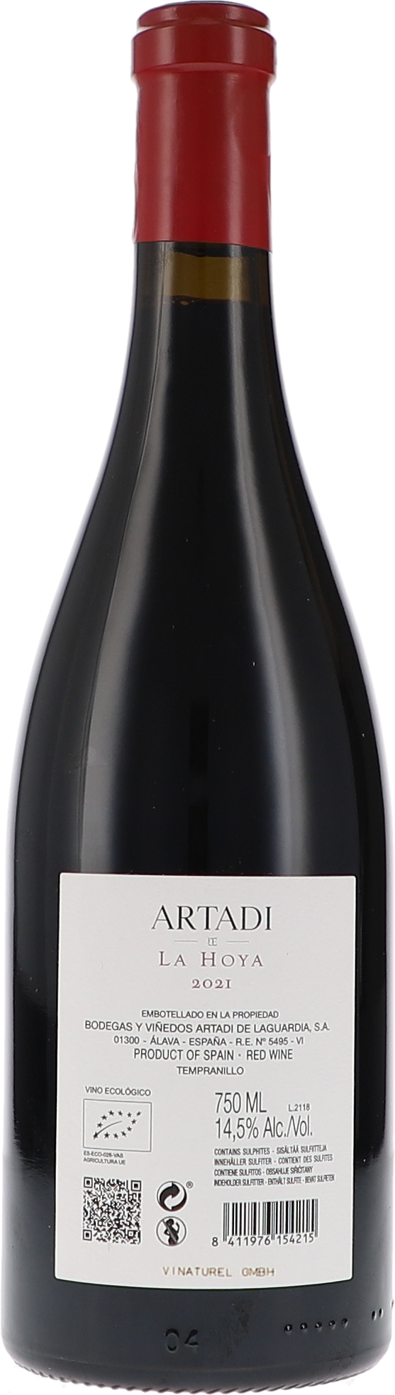 Wie kaum eine andere spanische Bodega steht Artadi für den Wandel von kellergeprägten zu terroirgeprägten Weinen. Seit den 1990er Jahren setzt das Weingut in der baskischen Rioja darauf, den Charakter spezifischer Lagen in seinen Weinen zum Ausdruck zu bringen. Der biozertifizierte Rotwein „La Hoya“ stammt von einem 3,3 Hektar großen, nach Osten ausgerichteten Weinberg in der Gemeinde Elvillar. Wir befinden uns hier im höher gelegenen und kühleren Teil der Alavesa, am Fuße der Sierra Cantabria. Die 58 Jahre alten Tempranillo-Reben wachsen auf tiefgründigen und lehmhaltigen Böden. Wie bei allen Artadi-Weinen werden die Trauben entrappt und spontan vergoren. Der Ausbau erfolgt in Eichenfässern vom unterschiedlicher Größe und Alter.