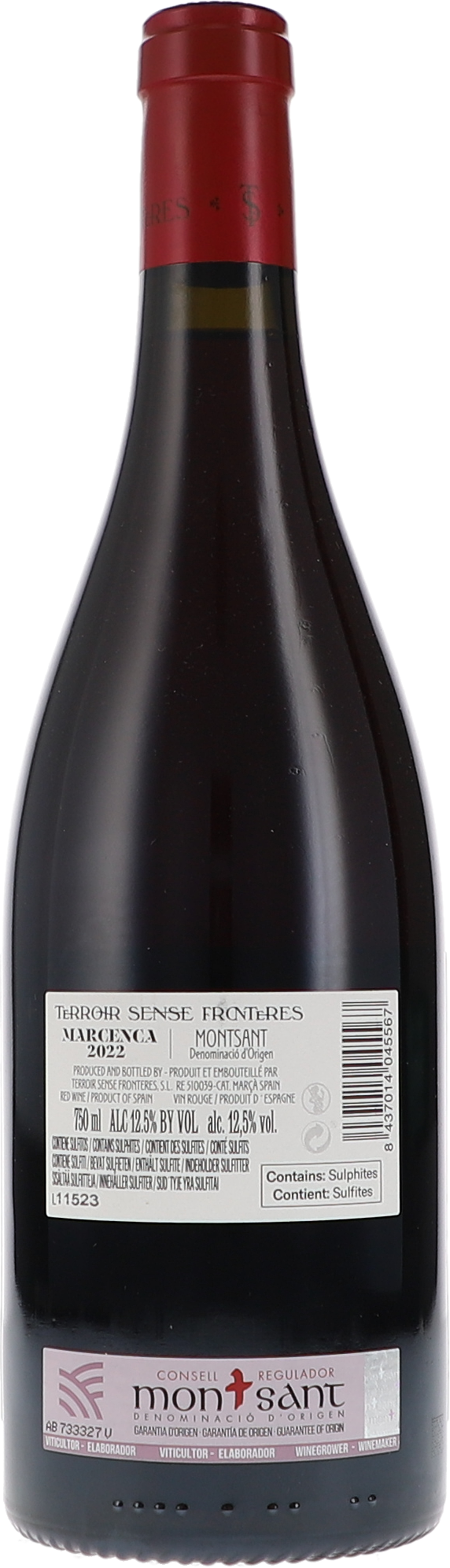 Das Weingut Terroir Sense Fronteres klassifiziert seine Weine nach burgundischem Vorbild, wobei der Rotwein Marcenca den Platz des Premier Cru einnimmt. Die Garnacha-Trauben stammen aus der Lage Els Montalts im katalanischen Anbaugebiet Montsant. Der Weinberg verfügt über Lehm- und Gipsböden und befindet sich auf einer Höhe von 800 Metern — viel weiter geht es im Montsant im Weinbau nicht nach oben. Die biodynamisch bewirtschafteten Reben sind etwa 50 Jahre alt. Winzer Dominik Huber und Winzerin Tatjana Peceric vergären die Trauben mit den Rappen und setzen auf eine sanfte Extraktion. Der Ausbau des Weins erfolgt ausschließlich in Betontanks.