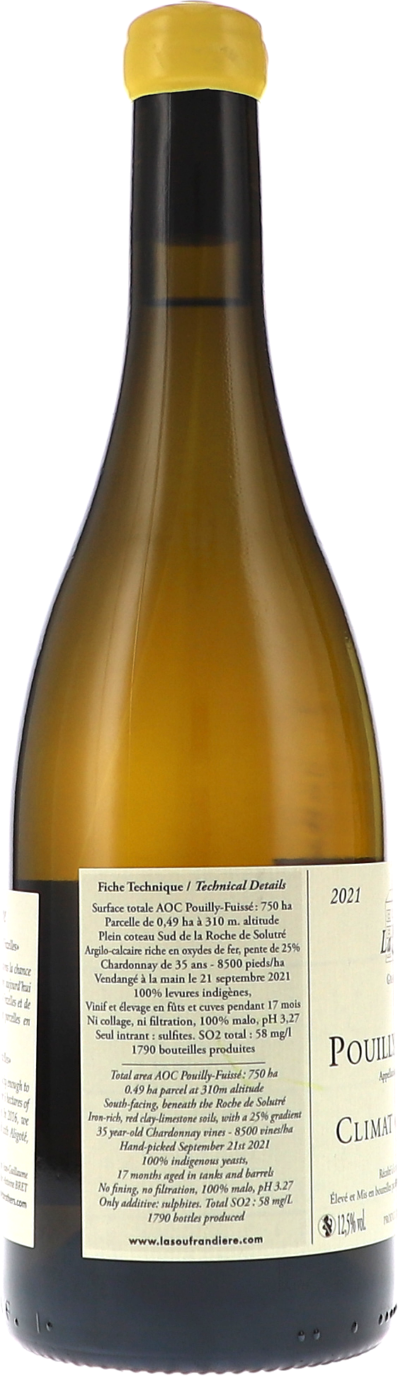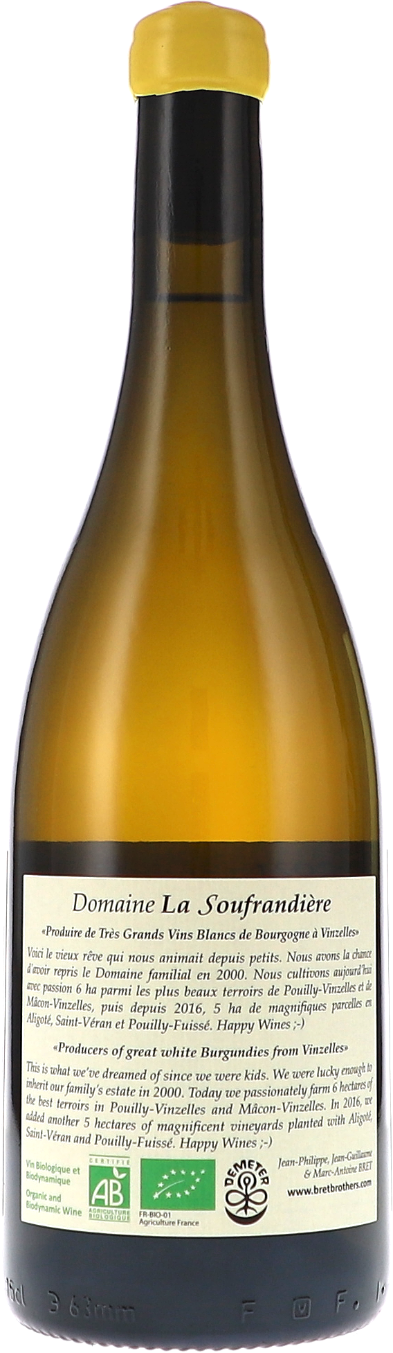 Die Bret-Brüder besitzen im Climat Au Vignerais in der Appellation Pouilly-Fuissé 0,49 Hektar. Der Weinberg liegt am Südhang des Roche de Solutré auf einer Höhe von 310 Metern und verfügt über 35 Jahre alte Chardonnay-Reben auf eisenhaltigem roten Lehm- und Kalkboden aus dem Bajocium (Jura). Handlese am 21. September 2021, Ganztraubenpressung und Spontanvergärung, danach Ausbau über 17 Monate in sieben bis 18 Jahre alten Fässern mit 100-%iger malolaktischer Gärung. Keine Schönung, keine Filtration. Der pH-Wert liegt bei 3,27, der Gesamtschwefel beträgt 58 mg/l je nach Fass. In 2021 hat das Weingut 50 % der Ernte durch Spätfröste und Hagel verloren.