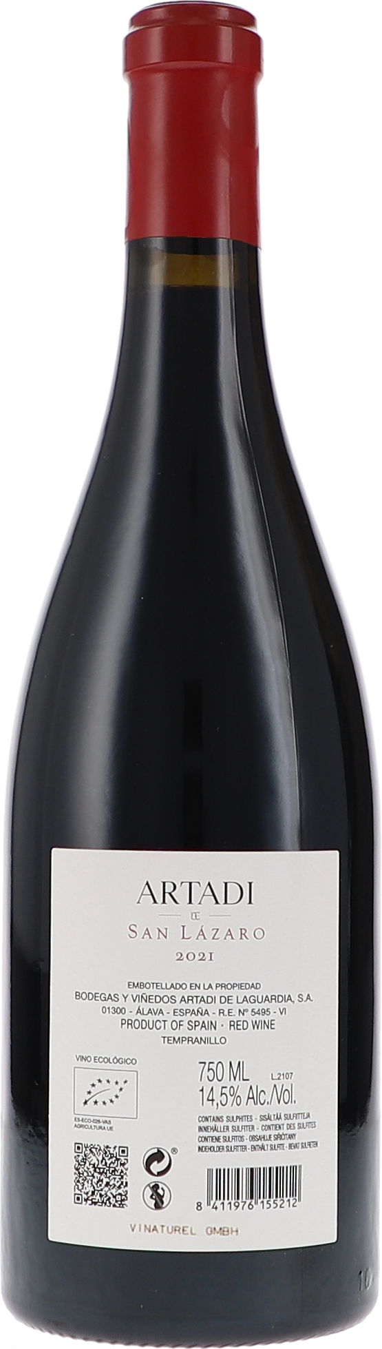 Wie kaum eine andere spanische Bodega steht Artadi für den Wandel von kellergeprägten zu terroirgeprägten Weinen. Seit den 1990er Jahren setzt das Weingut in der baskischen Rioja darauf, den Charakter spezifischer Lagen in seinen Weinen zum Ausdruck zu bringen. Der biozertifizierte Rotwein „San Lazaro“ stammt von einem 1,6 Hektar großen Weinberg mit südöstlicher Ausrichtung in der Gemeinde Laguardia. Die 68 Jahre alten Tempranillo-Reben wachsen auf sandig-lehmigen Böden. Wie bei allen Artadi-Weinen werden die Trauben entrappt und spontan vergoren. Der Ausbau erfolgt in Eichenfässern unterschiedlicher Größe und Alter.