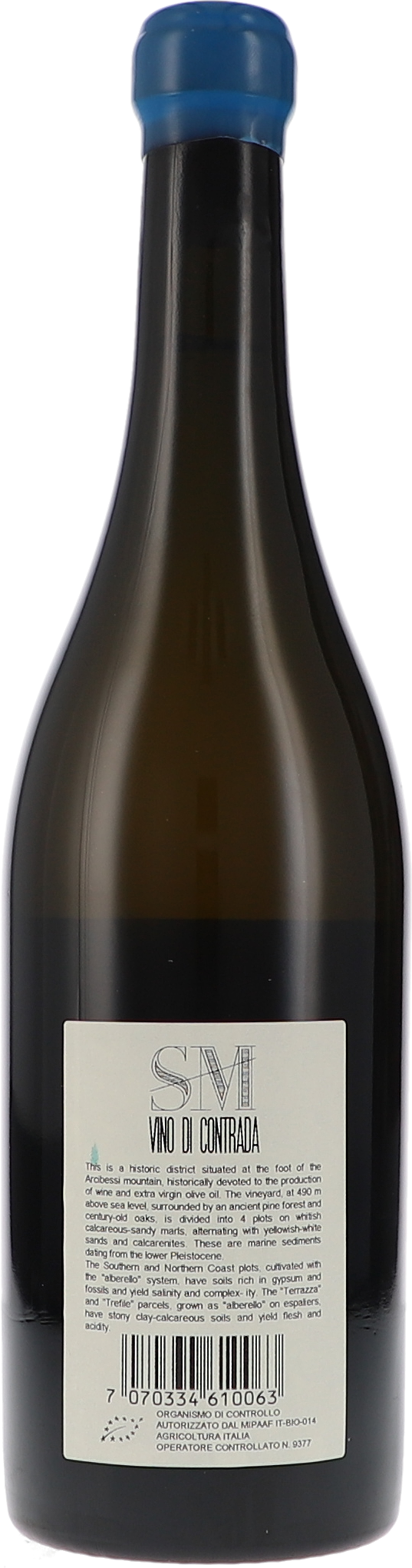 Der weiße Vino di Contrada Santa Margherita ist der letzte Neuzugang im Portfolio des Weinguts. Er ist die Erfüllung eines lang gehegten Traumes von Arianna Occhipinti, die diesen Weingarten nach langer Suche 2016 am Fusse des Iblei-Gebirge im alten Dörfchen Chiaramonte Gulfi fand. Der Weinberg liegt auf eine Höhe von 490 Metern inmitten von Pinienwäldern, Eichen und jahrhunderte alten Olivenbäumen und ist unterteilt in vier Parzellen auf sandig weißem Kalkmergel und sandigen Böden mit gelblich-weißem Kalzarenit - Meeres-Sedimente, die aus dem Pleistozän stammen. Die Parzellen Costa Sud und Costa Nord sind in der sizilianischen Einzelstock Erziehung (Albarello) gepflanzt und sorgen dank ihrer Gipshaltigen Böden für den salzigen Twist verantwortlich, die Parzellen Terrazza und Trefile stehen im Albarello am Spalier auf Kalkstein und sorgen für die frische Säure.