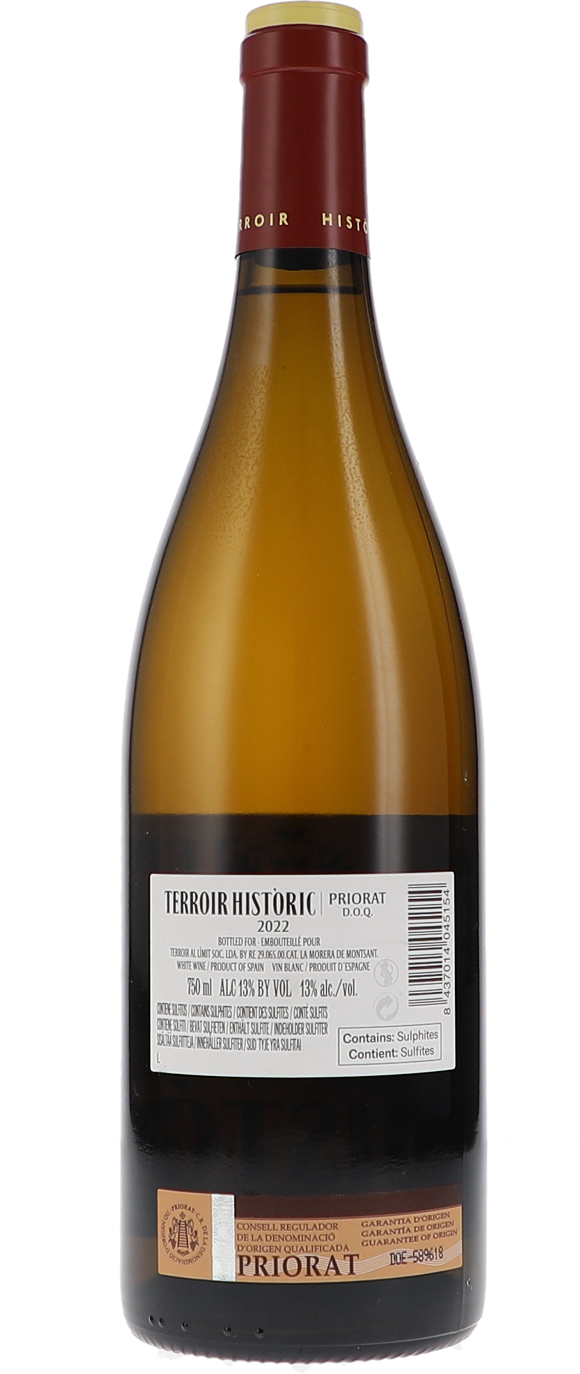 Der weiße Terroir Historic ist ein Blend aus 75% Garnacha Blanca und 25% Macabeo, den klassischen Weißweintrauben des Priorat. Es ist ein Weißwein, der praktisch eine ganze Appellation repräsentiert, denn die Trauben stammen aus Weinbergen in neun Dörfern des Priorats. Die Reben sind 35 bis 50 Jahre alt und wachsen auf 350 bis 800 Metern Höhe. Im Keller werden die Trauben als Ganzes, also auch mit den Rappen, spontan vergoren. Der weitere Ausbau des Weins erfolgt ausschließlich in Stahltanks.