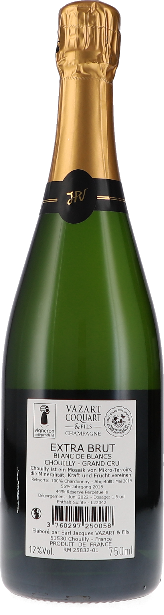 Der Vazart-Coquart Extra Brut Blanc de Blancs Grand Cru stammt aus einem Grand-Cru-Weinberg von elf Hektar in Chouilly. Das Alter der Chardonnay-Reben dort beträgt im Durchschnitt 45 Jahre. Die Reben wurzeln tief in Belemnit-Kreide. Das Weingut befand sich zum Zeitpunkt der Entstehung dieses Weines noch in Umstellung auf nachhaltigen und ökologischen Weinbau. Die erste zertifizierte Bio-Lese erfolgte 2020. Für diese Cuvée wurden 56 % der Lese aus 2018, sowie 44 % aus einer Réserve perpétuelle genutzt, die 1982 begonnen wurde und von der jedes Jahr 40 % entnommen und wieder aufgefüllt werden. Der Grundwein wurde in temperaturkontrollierten Edelstahltanks vergoren und durchlief eine malolaktische Gärung. Dégorgiert wurde der Champagner im Juni 2022 mit einer Dosage von 1,5 Gramm.