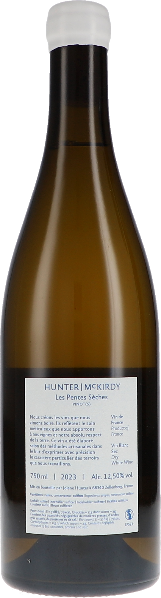 Lange haben Jolene Hunter und Paul McKirdy im Weingut Zind-Humbrecht gearbeitet. Die Südafrikanerin Jolene war im Export tätig, der aus Schottland stammende Paul war Kellermeister. Als es Zeit war, etwas Neues aufzubauen, suchten die beiden über Jahre hinweg die richtigen Weinberge und fanden sie im ebenfalls elsässischen Zellenberg, wo sie schon lange vorher biodynamisch bewirtschaftet worden waren. Die beiden erzeugen nun Weine aus Pinot-Rebsorten sowie Riesling aus Lagen rund um Zellenberg, die vom Lias-Kalkstein des jungen Jura geprägt sind. Gelesen wird, wenn für die beiden die Säure- und pH-Werte stimmig sind. Gepresst wird wie in der Champagne, ausgebaut wird auf der Vollhefe, aber ausschließlich in zehn Jahre alten Fässern. Außer einer minimalen Versand-Schwefelung wird in die Weine nicht mehr eingegriffen. Es sind Struktur- und Texturweine mit einem ganz eigenen Charakter, der für das neue Elsass stehen.