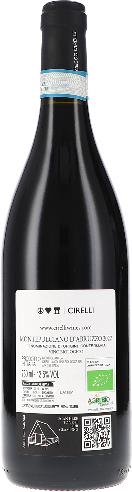 Nur acht Kilometer vom Meer, zwischen Nationalparks und den sanften Ausläufern der Abruzzen, liegt die „Farm“ von Francesco Cirelli. Francesco lebt die biodynamische Bewirtschaftung als ganzheitliches Konzept. Er bewirtschaftet neben den 4 Hektar Weinbergen noch 4 Hektar Feigenbäume, einen Hektar Olivenbäume sowie 13 Hektar Getreide. On top hält er sich eine kleine Ziegen- und Gänseherde, und ein Bed & Breakfast lässt Besucher an diesem Kleinod teilhaben. Seine Weine baut er in Beton-, Stahltanks und 800-Liter-Amphoren aus Florenz aus. Im Keller wird spontan vergoren, bei den Rotweinen mit einer Mazerationszeit von 15 Tagen. Die Weißen bleiben nur eine Nacht auf der Maische, bevor sie mit einer traditionellen Korbpresse abgepresst werden. In manchen Jahren filtert Francesco seine Weine grob, jedoch niemals die Amphorenweine. Alle Weine werden ungeschönt abgefüllt.