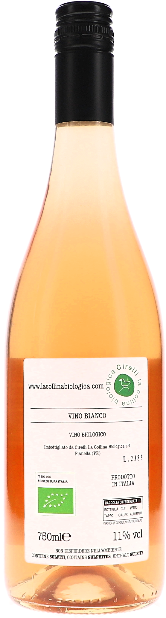 Die Trebbiano-Reben für diesen maischevergorenen Wein von Francesco Cirelli wachsen auf Kalk und Lehm. Die Ernte erfolgte Anfang September, die Trauben werden komplett entrappt und die Beeren dann für 30 Tage im Tank mazeriert. Die alkoholische Gärung findet hier ebenfalls statt. Im Anschluss trennt man den nun Wein gewordenen Most von den Schalen und presst sanft ab. Nach diesem Abstich ruht der Wein für vier Monate bis zur Abfüllung.