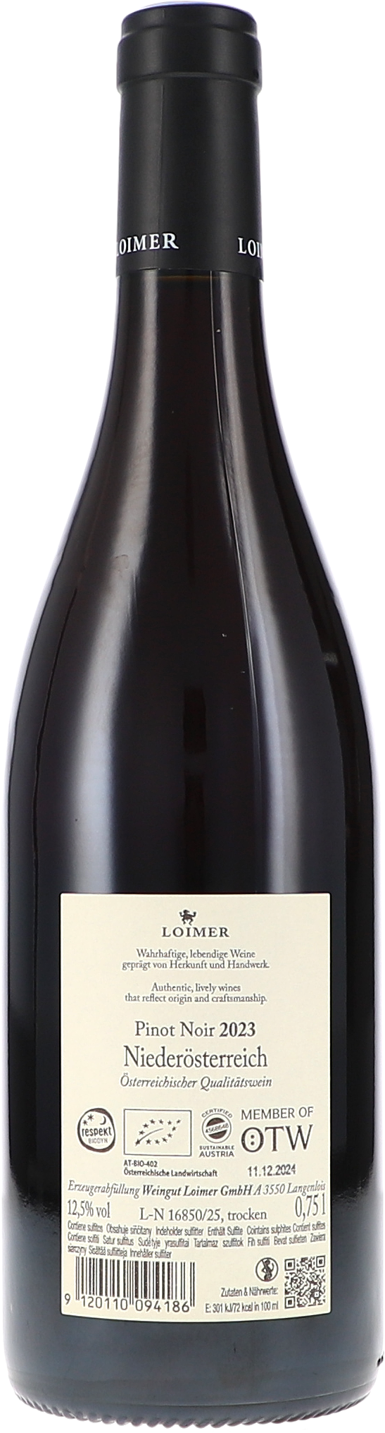 Die dunkelfruchtige Nase des 2023 Pinot Noir von Fred Loimer ist unterlegt von distinktiv würziger Aromatik, die an Umami und gedörrtes Fleisch erinnert. Kraftvoll mit dichtem Parfum schimmert darunter die rubinrote Frucht nach Maulbeeren und Preiselbeeren, Feigen und Granatapfel sowie etwas Schlehe nebst eingelegten schwarzen Nüssen. Ausladend und großzügig mit mittelkräftigem Körper.