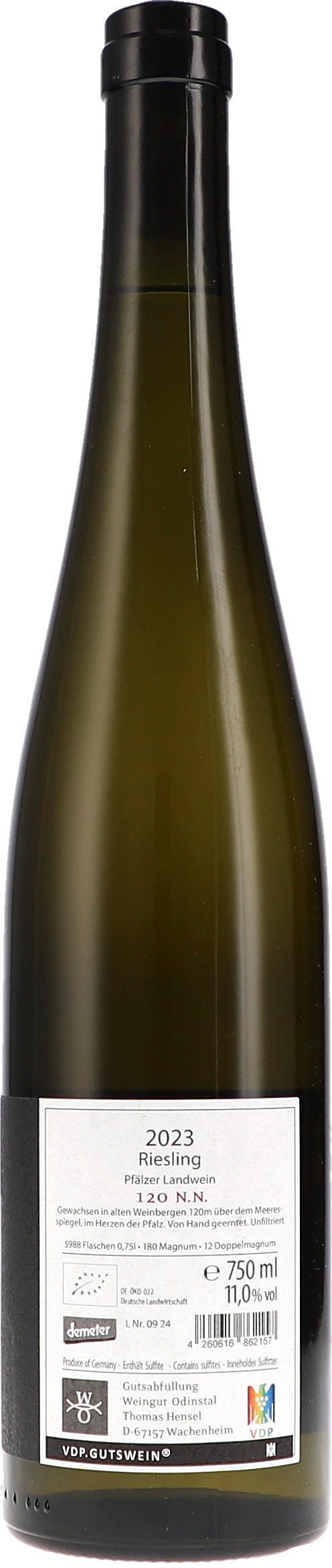 Das Wachenheimer Odinstal liegt auf einer Höhe von bis zu 350m und ist damit die höchste Einzellage der Mittelhaardt. Die dadurch bedingten etwas kühleren Temperaturen lassen die Trauben auf kleiner Flamme ausreifen. Dadurch entstehen sehr filigrane, subtile Aromen. Die Weinberge werden seit Anfang der 90er Jahre ökologisch bewirtschaftet, seit 2006 biologisch-dynamisch. Johann Ludwig Wolf, Bürgermeister von Wachenheim, erbaute das Weingut Odinstal Anfang des 19. Jahrhunderts. Die Familie Hensel erwarb das Weingut 1998 und setzt zusammen mit dem kongenialen Betriebsleiter Andreas Schumann seitdem kompromisslos auf Qualität und Authentizität. Die geologischen Verwerfungen durch den Vulkanausbruch am Pechsteinkopf haben dazu geführt, dass auf kleinstem Raum die Böden wechseln vom mineralreichen Basalt zu Buntsandstein, Muschelkalk und Keuper.