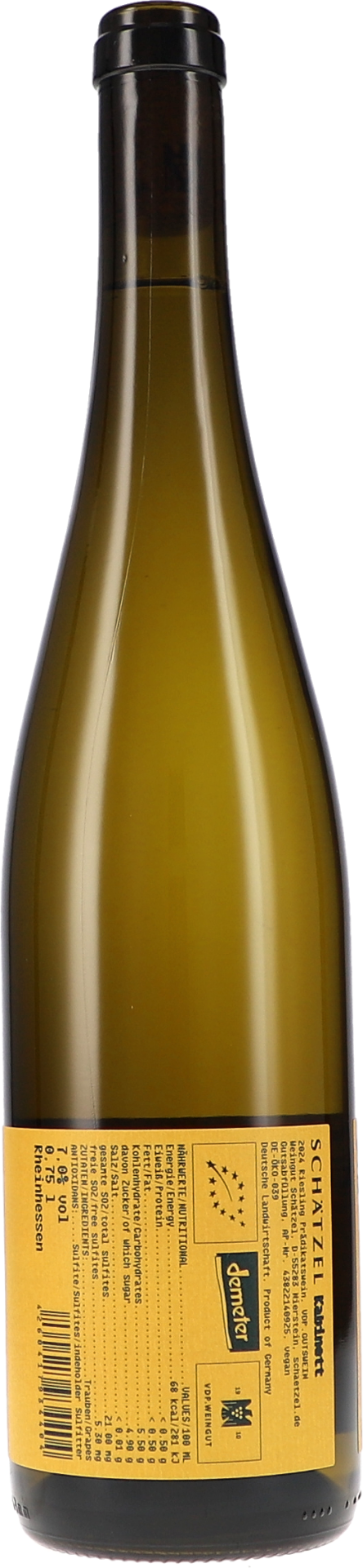 Der 2024er Riesling Kabinett VDP. Gutswein von Kai Schätzel zeigt sich mineralisch, mit feiner Frucht, er kokettiert mit gezuckerter Limette, reifer Orange, Aprikose und Pfirsich. Zarte rauchige und steinige Noten runden seinen verführerischen Duft perfekt ab.