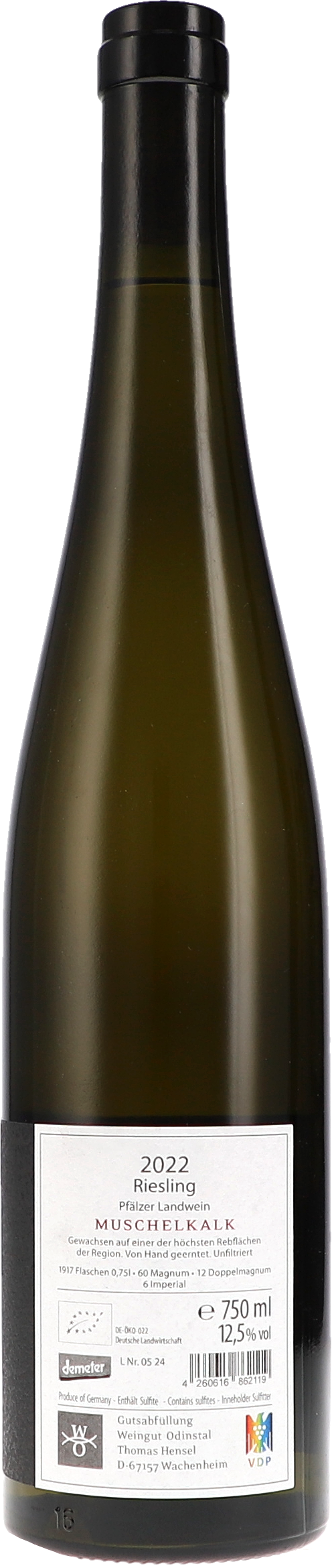 Das Wachenheimer Odinstal liegt auf einer Höhe von bis zu 350m und ist damit die höchste Einzellage der Mittelhaardt. Die dadurch bedingten etwas kühleren Temperaturen lassen die Trauben auf kleiner Flamme ausreifen. Dadurch entstehen sehr filigrane, subtile Aromen. Die Weinberge werden seit Anfang der 90er Jahre ökologisch bewirtschaftet, seit 2006 biologisch-dynamisch. Johann Ludwig Wolf, Bürgermeister von Wachenheim, erbaute das Weingut Odinstal Anfang des 19. Jahrhunderts. Die Familie Hensel erwarb das Weingut 1998 und setzt zusammen mit dem kongenialen Betriebsleiter Andreas Schumann seitdem kompromisslos auf Qualität und Authentizität. Die geologischen Verwerfungen durch den Vulkanausbruch am Pechsteinkopf haben dazu geführt, dass auf kleinstem Raum die Böden wechseln vom mineralreichen Basalt zu Buntsandstein, Muschelkalk und Keuper.