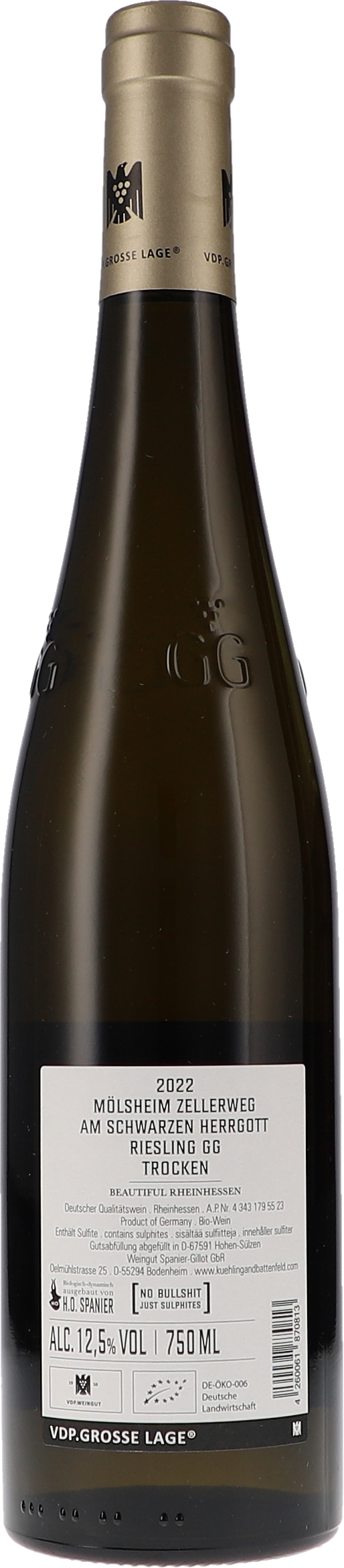 Was für eine Offenbarung im Duft, nachdem man ihn einige Stunden dekantiert hat, zeigt sich der 2022er Mölsheim Zellerweg Am Schwarzen Herrgott Riesling GG trocken mit ausdrucksvoller Mineralität, kompakt und kühl anmutend und Aromen von Zitrus, Grapefruit, grüner Apfel, Verveine, Minze, Muschelschalen und ein Hauch Sojasauce und Krustentierschale geröstet. So jugendlich und verschlossen er auch anmutet, so verheißungsvoll ist sein Entrée.