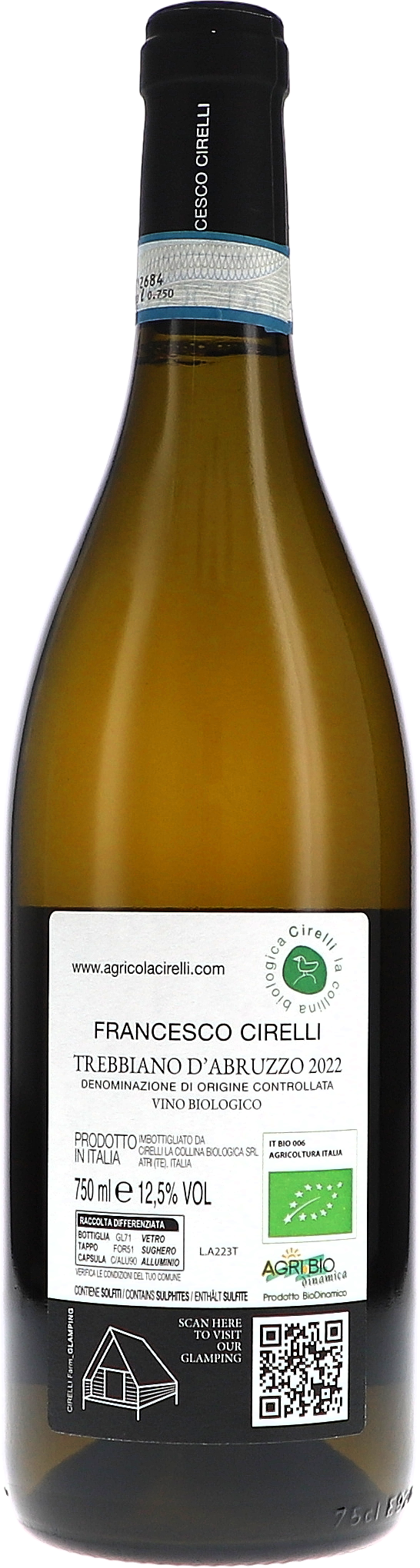 Nur acht Kilometer vom Meer, zwischen Nationalparks und den sanften Ausläufern der Abruzzen, liegt die „Farm“ von Francesco Cirelli. Francesco lebt die biodynamische Bewirtschaftung als ganzheitliches Konzept. Er bewirtschaftet neben den 4 Hektar Weinbergen noch 4 Hektar Feigenbäume, einen Hektar Olivenbäume sowie 13 Hektar Getreide. On top hält er sich eine kleine Ziegen- und Gänseherde, und ein Bed & Breakfast lässt Besucher an diesem Kleinod teilhaben. Seine Weine baut er in Beton-, Stahltanks und 800-Liter-Amphoren aus Florenz aus. Im Keller wird spontan vergoren, bei den Rotweinen mit einer Mazerationszeit von 15 Tagen. Die Weißen bleiben nur eine Nacht auf der Maische, bevor sie mit einer traditionellen Korbpresse abgepresst werden. In manchen Jahren filtert Francesco seine Weine grob, jedoch niemals die Amphorenweine. Alle Weine werden ungeschönt abgefüllt.