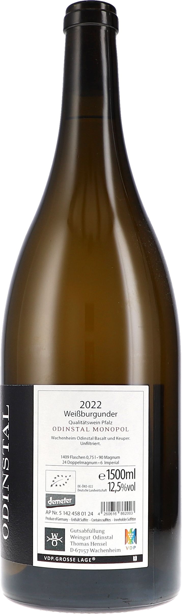 Das Wachenheimer Odinstal liegt auf einer Höhe von bis zu 350m und ist damit die höchste Einzellage der Mittelhaardt. Die dadurch bedingten etwas kühleren Temperaturen lassen die Trauben auf kleiner Flamme ausreifen. Dadurch entstehen sehr filigrane, subtile Aromen. Die Weinberge werden seit Anfang der 90er Jahre ökologisch bewirtschaftet, seit 2006 biologisch-dynamisch. Johann Ludwig Wolf, Bürgermeister von Wachenheim, erbaute das Weingut Odinstal Anfang des 19. Jahrhunderts. Die Familie Hensel erwarb das Weingut 1998 und setzt zusammen mit dem kongenialen Betriebsleiter Andreas Schumann seitdem kompromisslos auf Qualität und Authentizität. Die geologischen Verwerfungen durch den Vulkanausbruch am Pechsteinkopf haben dazu geführt, dass auf kleinstem Raum die Böden wechseln vom mineralreichen Basalt zu Buntsandstein, Muschelkalk und Keuper.