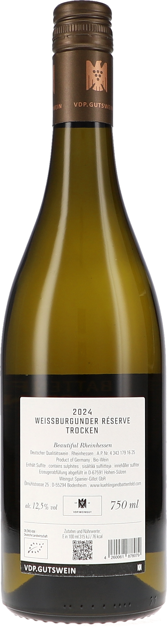 Am Gaumen präsentiert sich der Wein kompakt und dicht, mit einem angenehmen Schmelz, der sofort für ein cremiges Mundgefühl sorgt. Die gelbfruchtigen Aromen bleiben präsent, treten jedoch nicht zu vordergründig auf. Stattdessen überzeugt der Weißburgunder durch eine ausgewogene Balance von Saftigkeit und Druck, getragen von einer moderaten, aber präzise eingebundenen Säure, die dem Wein Struktur und Frische verleiht. Der Nachhall ist saftig, knackig und zeigt erneut die Hefeprägung sowie gelbe Frucht, wobei sich die Aromen eher subtil und fein-ziseliert entfalten. Insgesamt wirkt der Wein jugendlich, zugleich aber tiefgründig und elegant.