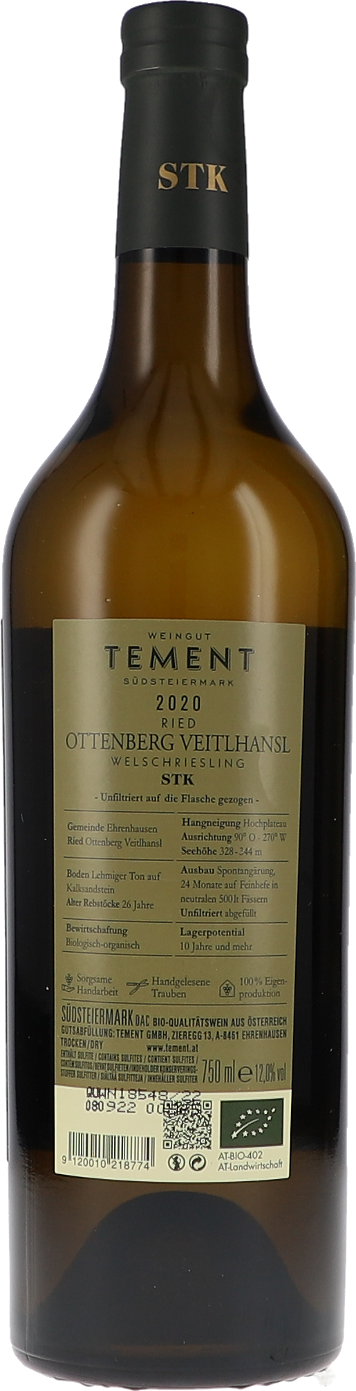Die Riede Ottenberg Veitlhansl liegt oberhalb der Gemeine Ehrenhausen auf einem Hochplateau, ca. 330m über dem Meeresspiegel. Die Reben waren zum Zeitpunkt der Lese exakt 26 Jahre alt und wachsen auf Kalksandstein mit einer Auflage von lehmigem Ton.