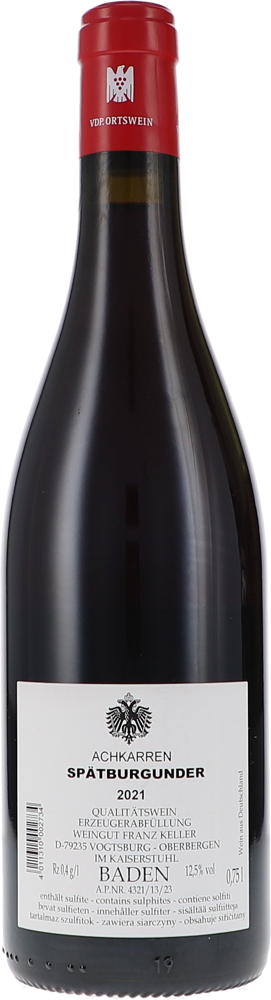 Achkarren Spätburgunder ist eine Vermählung der VDP. Große Lage Achkarren Schlossberg sowie der Lage Castellberg. Im Untergrund findet sich Tephrit, schwarze Erde und Löss.