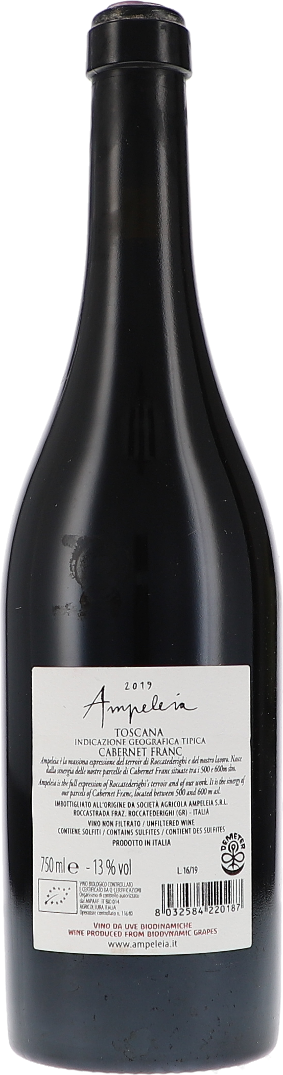 Ampeleia ist der Spitzenwein und Namensgeber des Weingutes in der Maremma. Cabernet Franc ist dabei die Identität stiftende Rebsorte, die nach Ansicht Ampeleias in der südlichen Toskana einzigartige Qualitäten liefert: Roccatederighi und Cabernet Franc haben eine seltene Synergie, aus der im Jahre 2002 das Weingut entstand. Die Cuvée aus einst sechs Rebsorten beschränkt sich heute allein auf den Cabernet Franc. Die Rebanlagen für den Ampeleia sind um das Weingut verteilt, stehen auf Lehm-Kalkböden und erstrecken sich über unterschiedliche Höhenlagen. Nach händischer Lese vergären die Trauben mit einem Anteil von 15% Ganztrauben spontan, bevor die Weine für 12 weitere Monate in Holzgebinden reifen.
