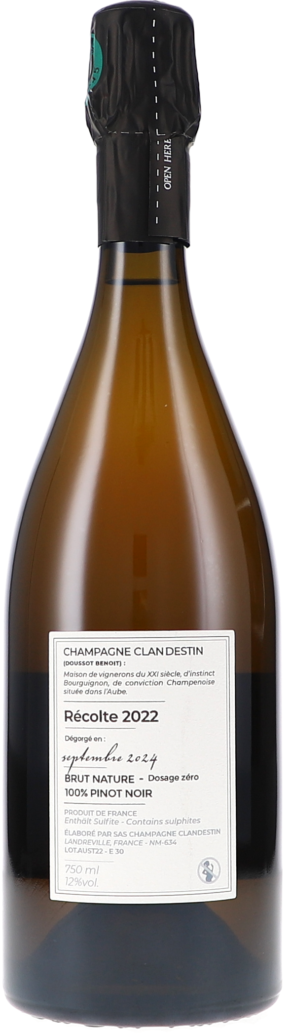 Champagne Clandestin ist das Projekt von Benoît Doussot. Benoît Doussot stammt aus dem Burgund, arbeitet mit Bertrand in dessen Weingut, hatte aber vor Jahren schon die Idee, „vergessene“ Weinberge für besondere Champagner zu nutzen und dafür die Trauben von Winzern zu kaufen, die Lust hatten, sich der biologischen oder biodynamischen Wirtschaftsweise zuzuwenden. Dieses Projekt hat er folgerichtig Clandestin, also diskret, heimlich bzw. geheim genannt. Heute entstehen dort auf von Ecocert zertifizierten Böden reinsortige Chardonnay- und Pinot-Noir-Champagner, die im Tonneau ausgebaut werden und mit null Gramm Dosage angeboten werden. Die Trauben aus den Nord-exponierten Lagen gehen in den Boreal, die aus den Süd-exponierten Lagen in den Austral. Die besten Parzellen werden als Single Vinyard und Single Vintage ausgebaut und kommen als Les Passagers auf den Markt.