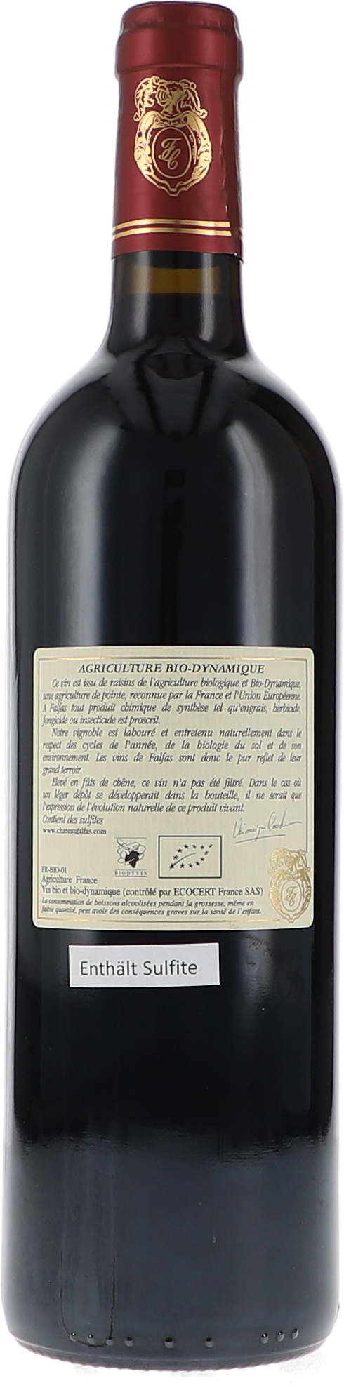 Seit 1988 ist das Château im Besitz der Familie Cochran. Die Weine zählen zur Avantgarde der Region Côtes de Bourg und werden dank ihrer außergewöhnlichen Kraft und Finesse regelmäßig von der internationalen Fachpresse ausgezeichnet. In der Tradition der großen Weingüter dieser Welt gehören geringe Erträge und eine strenge Selektion des Traubenmaterials zum Standard von Château Falfas. Die gesunden und gehaltvollen Trauben sind die Grundlage für Weine, die die vielschichtigen und komplexen Böden des Terroirs widerspiegeln. Die Trauben werden per Hand zu ihrem optimalen Reifezeitpunkt gelesen. Eine langsame und sorgsame Vinifikation unterstreicht die hohe Qualitätsphilosophie von Château Falfas. Korbpressen, kalte Mazeration, eine kühle Fermentation sowie der Ausbau in französi-scher Eiche gehören hier zum Handwerk. Das Ergebnis sind Weine, die exzellent in der Flasche reifen und über ein entsprechendes Alterungspotenzial verfügen.