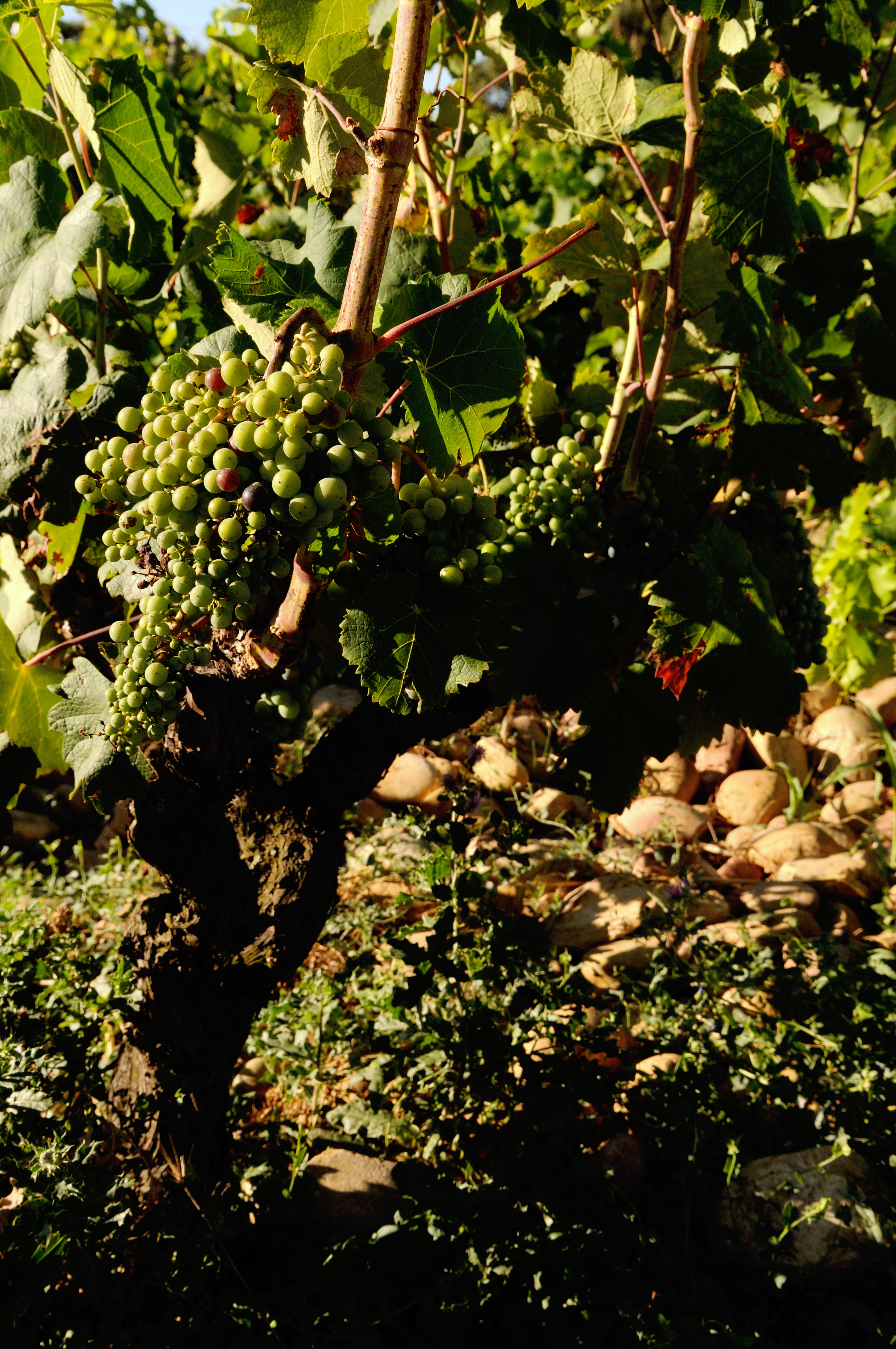 Perfektes Terroir und alte Rebstöcke sind die Voraussetzung für komplexe, tiefe Weine voller Charakter. Domaine de Villeneuve ist mit beidem reich gesegnet. In unmittelbarer Nachbarschaft zu Château de Beaucastel wachsen die über 80 Jahre alten Grenache-, Clairette- und Cinsault-Reben. Aufgrund ihres biblischen Alters werfen sie zwar geringe Erträge ab, entschädigen dafür aber mit umso mehr Finesse und Eleganz. Eine Besonderheit dieser Domaine ist die Tradition, die Rebsorten nicht in unterschiedlichen Parzellen wachsen und reifen zu lassen und sie dann anschließend getrennt zu vinifizieren. Die Assemblage findet hier vielmehr schon im Weinberg statt. Die fünf verschiedenen Traubensorten wachsen bunt gemischt in den Rebzeilen und werden dann auch gemeinsam verarbeitet, um so die Terroirspezifität möglichst optimal zu gewährleisten.