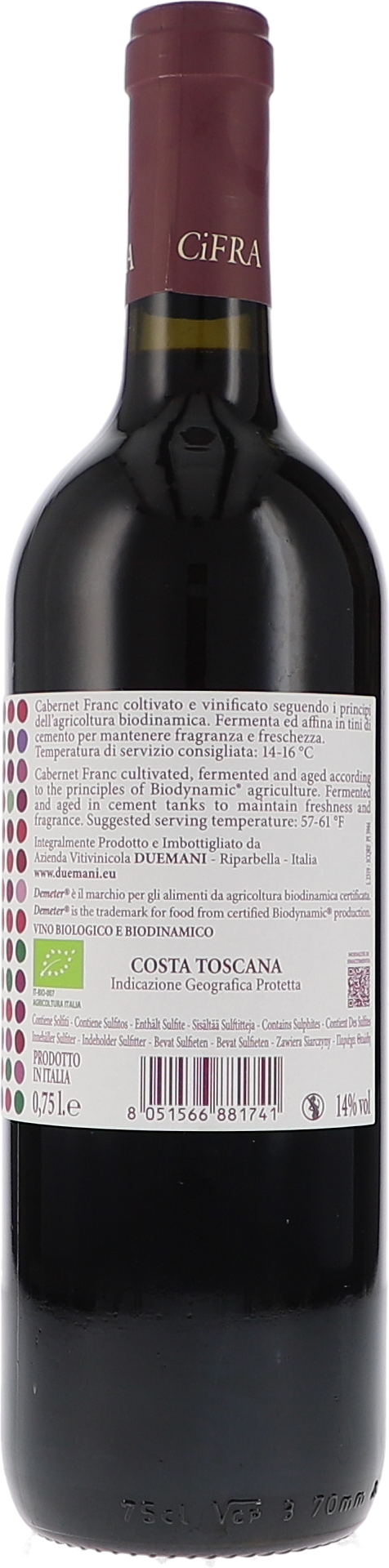 Auf der Zunge weichen beim 2022er CiFRA von Duemani die dunklen Beerennoten einer süßen Kirschfrucht. Äußerst charmant gleitet er über den Gaumen, und es blitzt hier und da rote Paprika auf, in Kombination mit Pfeffer und einer Unzahl toskanischer Kräuter, die wir bereits in der Nase wunderbar wahrgenommen haben. Viel Finesse und Eleganz gepaart mit Saftigkeit – Cabernet Franc at its best aus der Maremma! Bravo Luca D'Attoma.