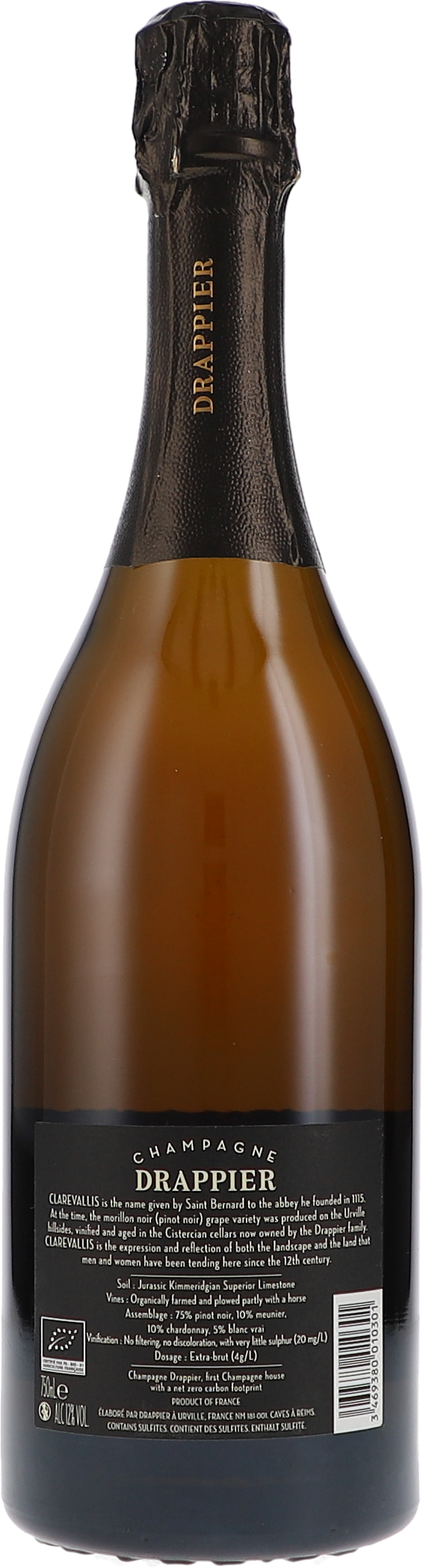 Der Clarevallis ist eine Hommage an den Heiligen Bernhard, der 1115 die Abtei von Clairveaux etwa 13 Kilometer von Urville entfernt gründete. Im Jahre 1152 ließ Bernhard einen Gewölbekeller errichten, der heute dem Haus Drappier gehört. Es handelt sich um eine Cuvée aus 75 % Pinot Noir, der Rest sind Chardonnay, Pinot Meunier und Blanc Vrai. Es wurde nur der Saft der jeweils ersten Pressung (Cuvée) verwendet. Die Pressung erfolgte mechanisch mit geringem Druck. Der Most floss durch Schwerkraft in die Tanks. Die natürliche Klärung erfolgte auf natürliche Weise. Die Gärung in Edelstahltanks dauerte etwa zwei Wochen bei niedriger Temperatur. Danach erfolgte die natürliche und vollständige malolaktische Gärung. Keine Kaltstabilisierung, keine Filtration, minimale Schwefelung unter 20 mg/l. Der Ausbau auf der Hefe dauerte etwa drei Jahre. Das genaue Datum des Dégorgements ist auf der Flasche eingraviert. Die Dosage beträgt 4 Gramm.