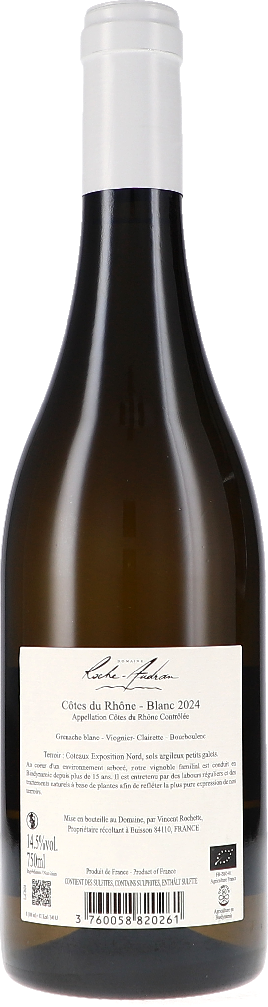 Vincent Rochette, stolzer Eigner der Domaine Roche-Audran, hat die Weinberge rund um das ehrwürdige Örtchen Visan von seinen Eltern und Großeltern übernommen. Vor über 80.000 Jahren wurden die Böden dieser Domaine während der Würmeiszeit geformt. Die zwischen 50 und 60 Jahre alten Rebstöcke gedei-hen auf steinigen- und kalkhaltigen Tonböden. Grenache wächst auf dunkelroter Krume, während Syrah in den dunkelbraunen Böden tief wurzelt. Die Weinberge dieses ausschließlich biodynamisch arbeitenden Winzers sind von Eichen, weißer und roter Clematis sowie verschiedenen Heckensträuchern und Kräutern gesäumt. Diese kleinen Biotope sind wichtig für ein natürliches biologisches Gleichgewicht in den Rebbergen.