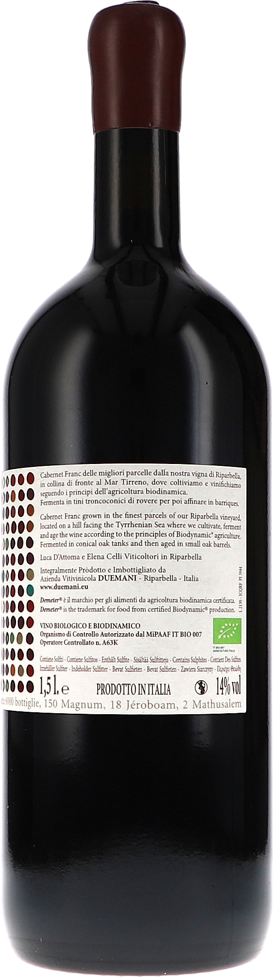 Luca D‘Attoma gehört zu den ganz großen Stars der italienischen Weinszene. Als önologischer Berater vieler Betriebe in ganz Italien hat er sich einen exzellenten Ruf weit über das Land hinaus erworben. Seit der Jahrtausendwende bauen er und seine Partnerin Elena Celli im Örtchen Riparbella bei Bolgheri ihre eigenen Weine an. Wie in der Form eines Amphitheaters schmiegen sich die Rebberge in die Landschaft. Die Natur hat hier wie von Meisterhand drei unterschiedliche Lagen geformt. Ganz oben sind die Böden am nährstoffreichsten, wie geschaffen für Cabernet Franc. Am Fuße des sanften Hügels in der kleinsten Parzelle wächst Syrah auf steiniger, fast schon ausgedörrter Krume. Die Lage in der Mitte ist Merlot vorbehalten. Die Intensität und die Essenz der Weine von Duemani beweisen eindrucksvoll, dass dem biodynamischen Weinbau, die Zukunft bei den Topgewächsen gehört.