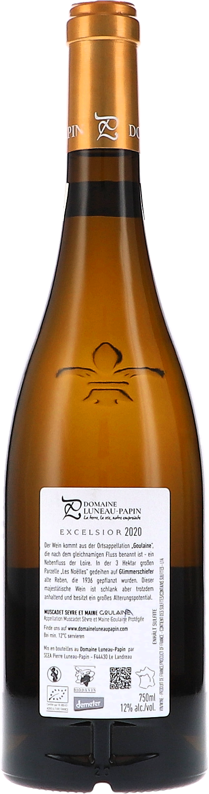 Am Gaumen präsentiert sich der junge Excelsior tief und kraftvoll mit einer Mischung aus reifer Frucht, Mandelmus, Hefe sowie Apfel- und Grapefruitschalen. Gerade die Mandelnoten sind typisch für diesen Muscadet, und man findet sie bei jungen wie gereiften Exemplaren. Der Muscadet wirkt präzise und linear mit einer reifen, aber lebendigen Säure und einer untergründigen Mineralität und Steinigkeit. All das ist unterlegt mit einer Anmutung von Mille-feuille, Hefe, gelber Frucht und feinstem Gerbstoff. Der Excelsior verfügt über alle Anlagen eines großen Weißweines.