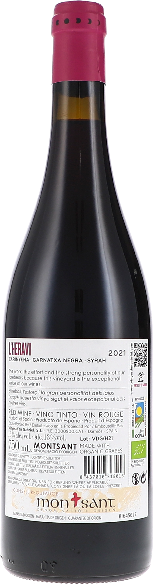 L’Heravi ist eine Cuvée aus Cariñena (Carignan Noir, Samsó), Garnacha (Grenache Noir) und Syrah, ausgebaut im Beton und Edelstahl. Die Reben wachsen auf kalkhaltigen, lehmigen und kiesigen Böden in einer Höhe von 125 bis 200 Metern über dem Meeresspiegel, weniger als 30 Kilometer entfernt vom Mittelmeer. Die Garnacha stammt von 30 Jahre alten Reben, die Cariñena von 45 Jahre alten und der Syrah von 25 Jahre alten Reben.