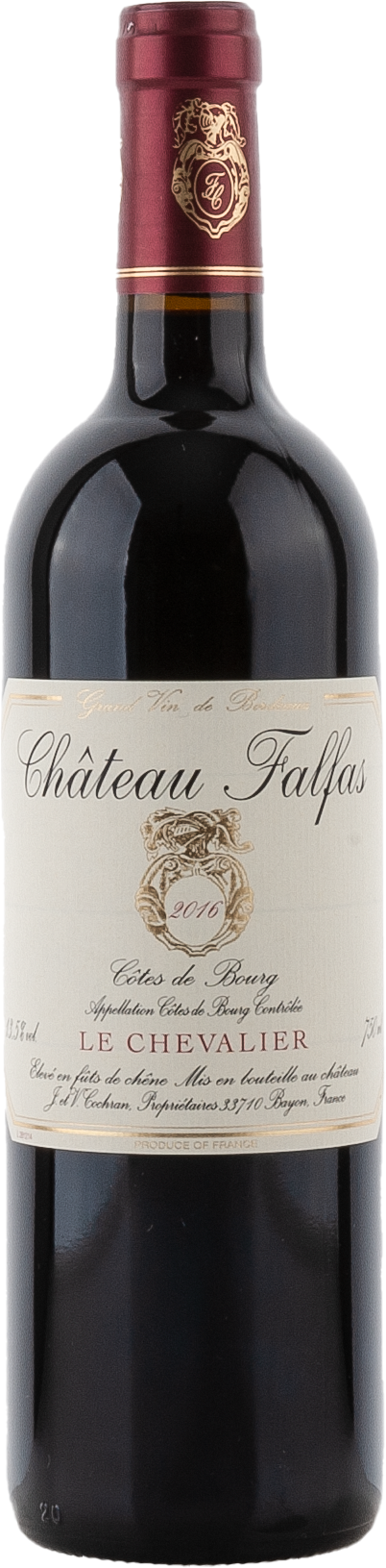Seit 1988 ist das Château im Besitz der Familie Cochran. Die Weine zählen zur Avantgarde der Region Côtes de Bourg und werden dank ihrer außergewöhnlichen Kraft und Finesse regelmäßig von der internationalen Fachpresse ausgezeichnet. In der Tradition der großen Weingüter dieser Welt gehören geringe Erträge und eine strenge Selektion des Traubenmaterials zum Standard von Château Falfas. Die gesunden und gehaltvollen Trauben sind die Grundlage für Weine, die die vielschichtigen und komplexen Böden des Terroirs widerspiegeln. Die Trauben werden per Hand zu ihrem optimalen Reifezeitpunkt gelesen. Eine langsame und sorgsame Vinifikation unterstreicht die hohe Qualitätsphilosophie von Château Falfas. Korbpressen, kalte Mazeration, eine kühle Fermentation sowie der Ausbau in französi-scher Eiche gehören hier zum Handwerk. Das Ergebnis sind Weine, die exzellent in der Flasche reifen und über ein entsprechendes Alterungspotenzial verfügen.