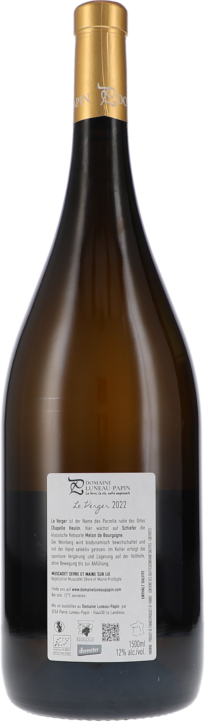 Dieser Muscadet de Sèvre et Maine aus der Sorte Melon de Bourgogne stammt aus einem 1998 gepflanzten Weinberg im Dorf La Chapelle Heulin. Der Boden ist geprägt von Schiefer. Le Verger ist der Katastername der Weinbauparzelle, er bedeutet so viel wie Obstgarten und war die Inspiration für das Etikett mit der Darstellung der Verführung Adams durch Eva im Garten Eden.