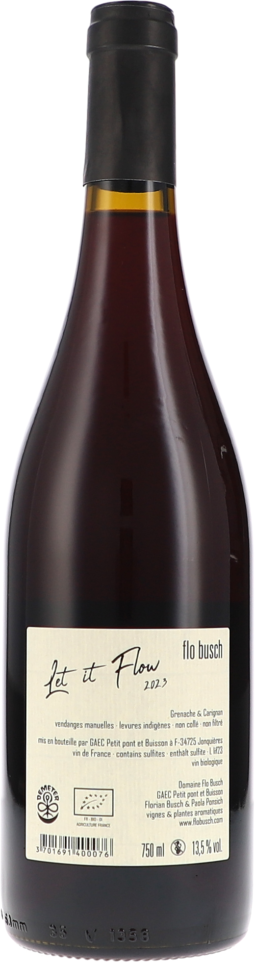 Ursprünglich war es Florian Buschs Idee, zusammen mit seinem Bruder Johannes irgend- wie die tragende Rolle im Weingut ihrer Eltern in Pünderich an der Mosel zu übernehmen. Aber Florian hat seine Liebste im Languedoc gefunden und zusammen mit ihr, mit Paola Ponsich, 2018 die Domaine Flo Busch gegrün- det. Das Weingut liegt in Jonquières im Dépar- tement Hérault. Das Terroir ist zum Großteil von Kalksteinschotter als Basis, und ein kleine- rer Teil vom Kalksteinmergel geprägt, auf dem die beiden aktuell 8 Hektar Grenache Blanc und Grenache Rouge, Vermentino, Carignan und Syrah bewirtschaften. Die Weinberge sind schon zertifiziert oder befinden sich in Umstel- lung auf biologischen Weinbau.