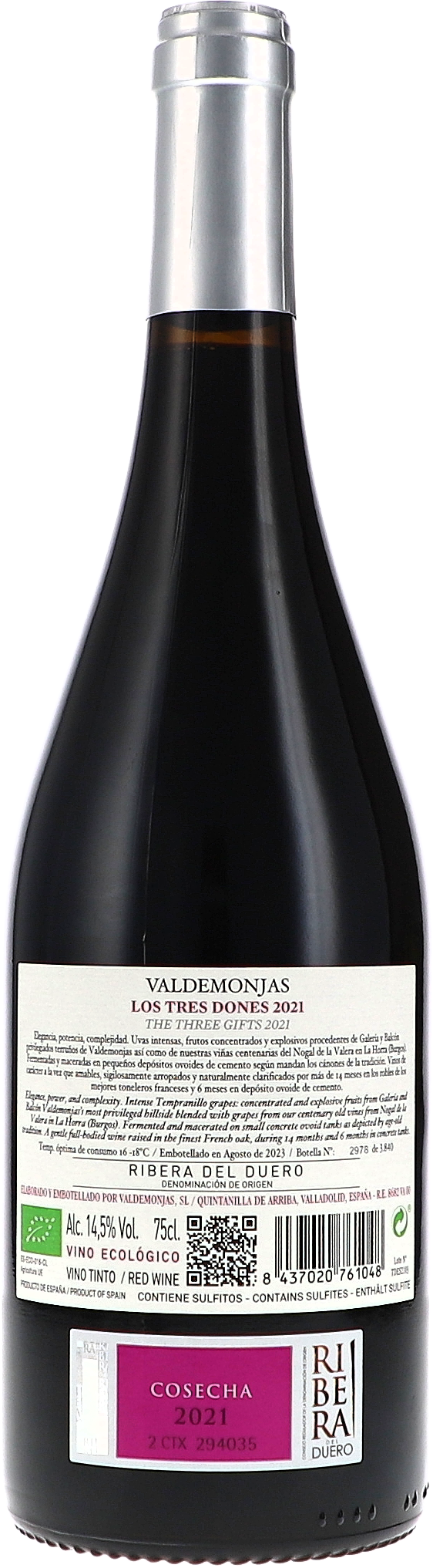 Am Gaumen zeigt sich der Los Tes Dones 2021 mit einer ausgezeichneten Balance aus Primär- und Sekundärnoten, aus saftiger Frucht und gut eingebundenen Holznoten. Trotz seines kräftigen Körpers ist er ein eleganter, saftiger und frischer Rotwein, mit feinkörnigen Tanninen, komplexer Aromatik und animierender Länge.