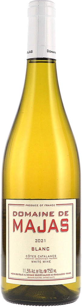 Der Majas blanc ist als IGP Cotes Catalanes klassifiziert und besteht zu je einem Viertel aus Macabeu, Rolle, Grenache blanc und Chenin blanc. Die Reben sind im Schnitt 35 Jahre alt und liefern gut 38 Hektoliter Ertrag. Gewachsen auf Lehm- und kalkhaltigem Boden erfolgt die Lese manuell, die Vergärung spontan und der Ausbau ohne Holz im Stahltank. Ein frischer südfranzösischer Zischer.